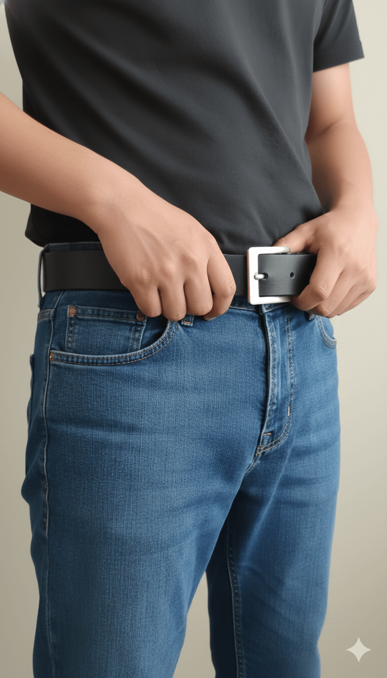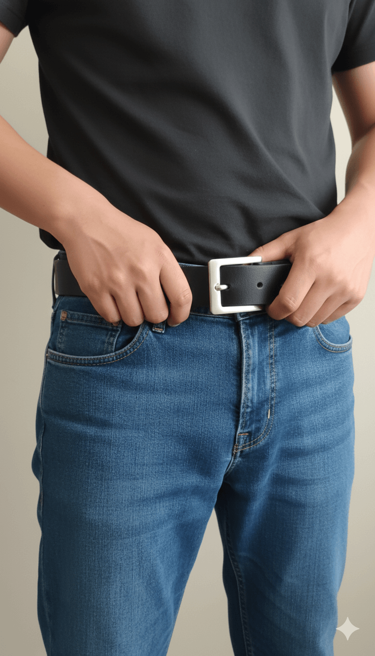 Elevate your everyday look with this high-quality, genuine leather belt. Crafted for durability and style, this belt is guaranteed 100% genuine leather, offering a premium feel and long-lasting performance. Featuring a sleek, rectangular metal buckle, it provides the perfect blend of ruggedness for casual wear with jeans and polish for smart-casual office attire. The smooth black finish and robust construction make it an indispensable accessory for any man’s wardrobe.
