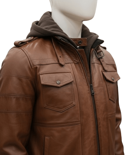 The Urban Scout offers a perfect blend of utility and fashion. Made from high-grade leather with a detachable hood and multiple pockets, this bomber jacket keeps you ready for any adventure.