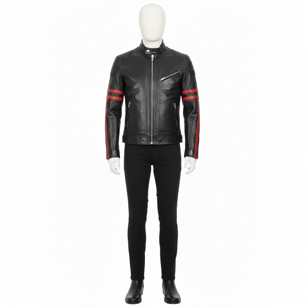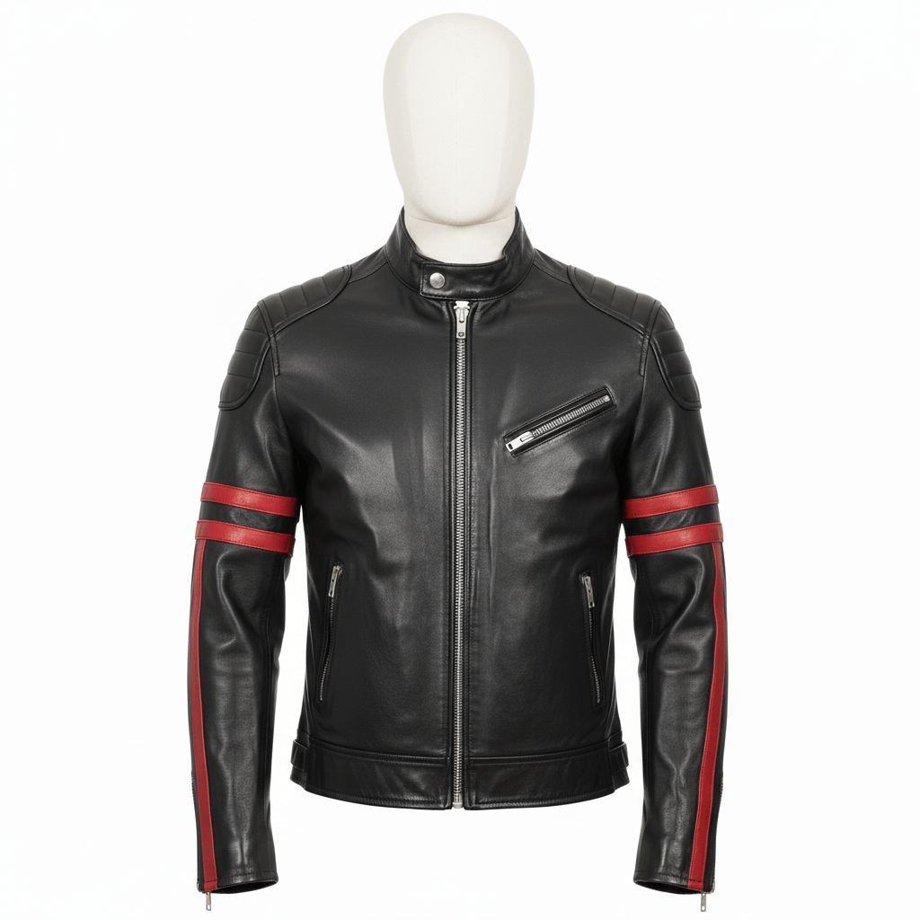 The Velocity Biker | Genuine Leather Racing Jacket with Dual Sleeve Stripes